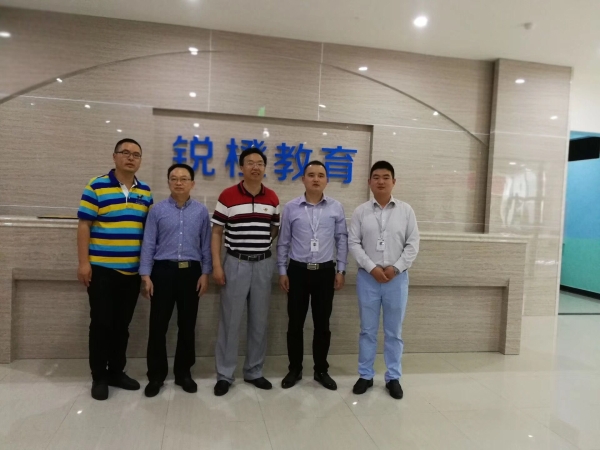 5月24日,tyc5997太阳集团党总支书记白成良、学工办主任刘友洪和中文系党支部书记吴立友一行到公司优秀创业员工杨小龙董事长创办的锐橙教育洽谈员工就业事宜。