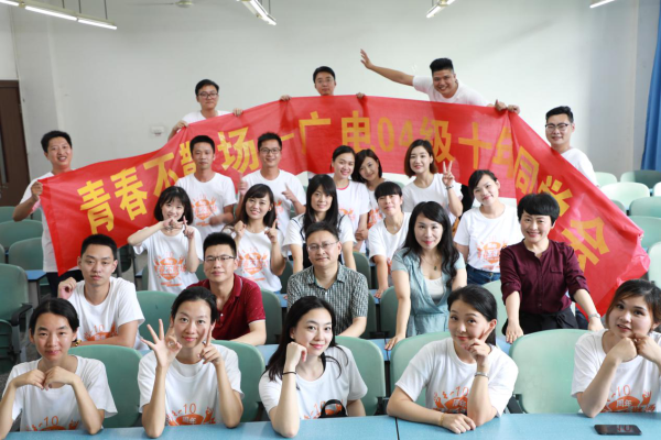 青春不散场,无需更多言语。六月离校,六月回校。美好的感觉一如当年,像大一刚进校时,你我在星湖校区报到,游逛食堂、寝室、教室,座谈畅言;又赏桃花岛、林荫大道以及曾经念念不忘的校门口照相馆和网吧。似乎一切都没有变,中午吃朴实鱼庄,校园漫步,合影留念,酒精进一步放大了我们的欢乐和喜悦。下午集中到红河校区开班会,点名、自我介绍,以及向老师汇报现在的生活和工作状态。十年光阴似乎流水无痕,大多数的同学不过是贪吃了食堂的小炒肉,只是身形肥了一点点,同学情谊还是固若金汤;十年光阴犹如大浪淘沙,很多同学都已立业成家,宏图小展,世事变迁情谊终究不变。