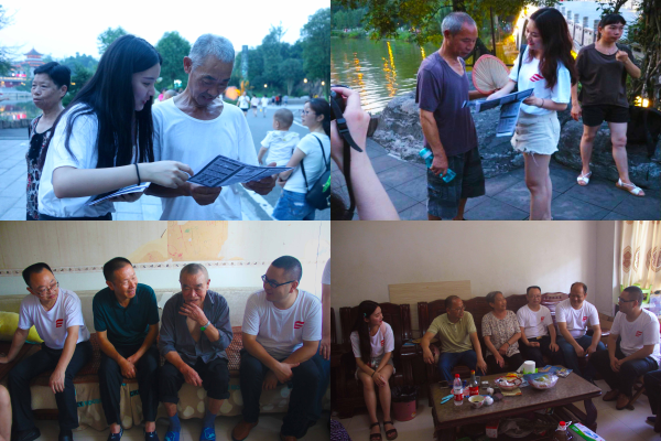 牢记使命,坚定信念。服务团在璧山的企业、社区等地进行了“十九大精神”的宣讲活动。宣讲以“号召青年人进取拼搏,努力实现中华民族伟大复兴”为主题,详细向企业职工、社区居民讲解了十九大报告中的重要内容,全面展示了报告中的新理念、新观点、新思想。志愿者们也以发放“十九大精神”宣传单的形式,与群众进行互动交流,引起了当地居民和企业职工的热烈反响。服务团还看望了壁泉街道华龙社区老党员刘吉富、李世碧两位老党员,为他们送去了牛奶、菜油,向他们致以真挚问候。老党员们也分享了自己的入党经历,就党性、使命、信念等方面与志愿者做了深入交流,寄语志愿者要坚定跟党走的理想信念,要坚持为人民服务的原则,要坚决执行党的重要决定。