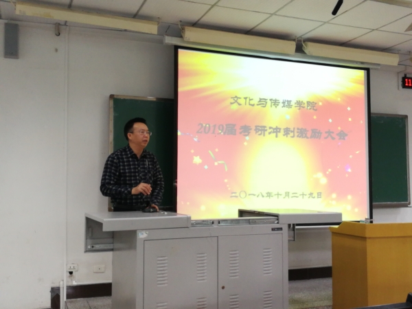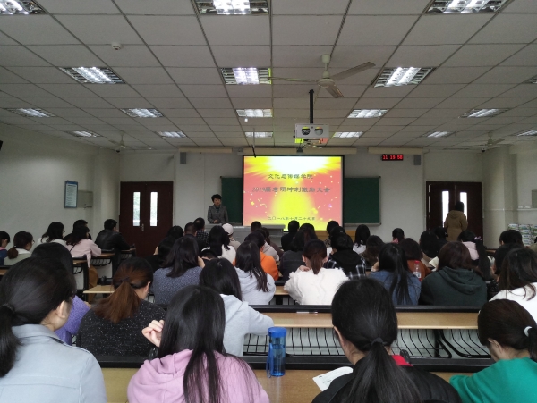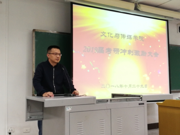 为强化公司考研员工的考研积极性,让员工进一步坚定考研信心、明确目标、激发斗志。公司于10月29日上午11点在知津楼D202举办了2019届考研冲刺激励大会。公司关工委成员、全体领导班子成员、学工办主任刘友洪与2019届辅导员张雪、余建荣老师出席了大会。会议由文化与传媒tyc5997太阳集团党总支书记白成良主持,2019届80名考研员工代表参加了此次激励大会。