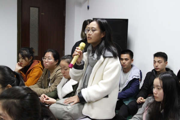 会上,李天福以幽默风趣的话语同学们表达了真挚的祝愿,并对18级新生目前积极的学习面貌、热情的工作状态表示了肯定,让同学们感受到了公司的关怀。李天福叮嘱同学们多去图书馆,在书籍中提升内涵、寻求发展、提升价值、确立目标,引导同学们明白大学学习的意义与乐趣。白成良就创业与就业问题作出了详细的回答,鼓励大家积极创新、勇于创业,希望同学们在创新创业中提升自身综合素养。李芹燕则在同学们如何选择社团、如何平衡学习与工作上作出了回复,教导同学们有效利用时间丰富自己,为将来的职业生涯奠定坚实基础。余建荣为大家解答了研与英语四级的问题师言如春风化雨,温言解惑。期间,师生在学习、就业和生活等方面线上提问和线下交流的形式进行互动,共度了一段轻松温馨的时光