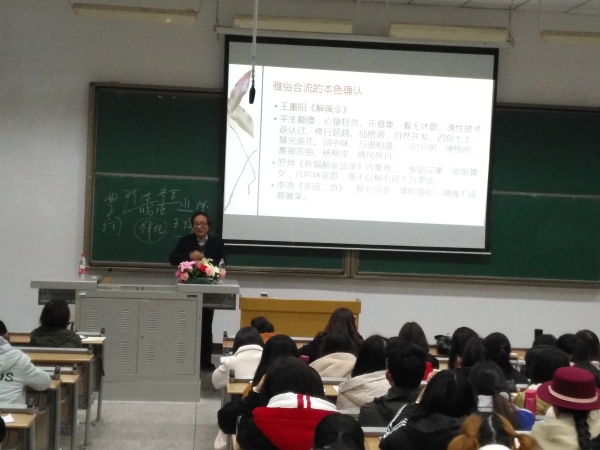11月27日晚,应公司邀请,暨南大学中文系教授、博士生导师赵维江莅临知津楼红河六阶,为公司200多名师生举办了题为“宋词元曲的交接”的学术讲座。