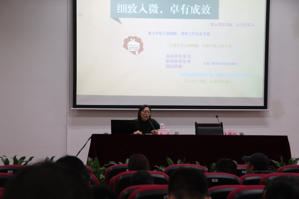 在交流会中,牟芷老师用辅导员的切身经历出发,以“辅导员工作大有可为,大有作为”为题,提炼了自己作为一名辅导员始终坚持的大纲:“细致入微、卓有成效,工作细碎而细致,提炼方法见实效;苔花如米小、也学牡丹开,拥抱辅导员岗位,享受和热爱辅导员工作;你若盛开、清风自来,提升自我综合素质,员工群中立榜样;精心灌溉、花开满园,师生情浓、情伴一生。”在交流会中,牟芷结合具体事例,特殊故事将辅导员工作生动有趣的分享出来。