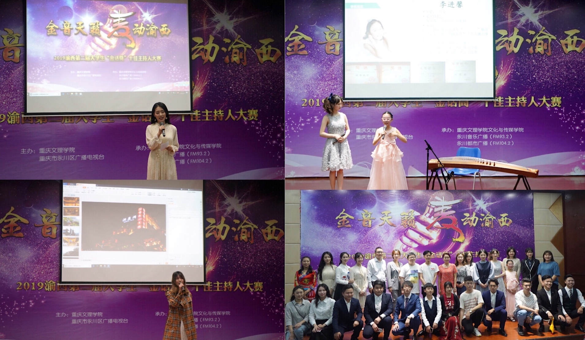 洋溢青春,秀出精彩。4月13日下午,由永川区广播电视台和公司主办,永川音乐广播、永川都市广播及公司承办的渝西第二届老员工“金话筒”十佳主持人大赛复赛在博文馆101顺利举行。永川广播电视台都市广播节目总监刘兵、重庆市十佳播音员林燕、永川广播电视台节目主持人肖红担任评委嘉宾,校团委老师陈柏骏,教育公司教师叶静等出席比赛。