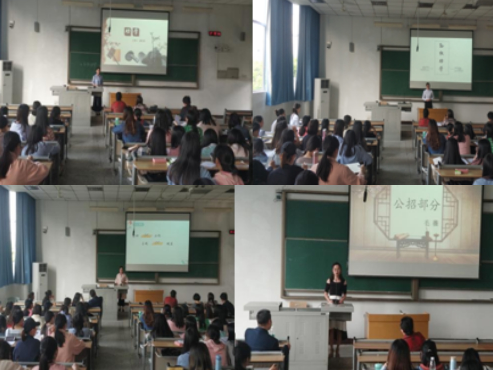 2015级汉文师范实习汇报结束后,又马上开始进行2016级汉语言文学师范专业领航课试讲,2016级员工代表李柚君、余文华和解红英同学从说课和讲课两部分,依次展示他们的试讲。