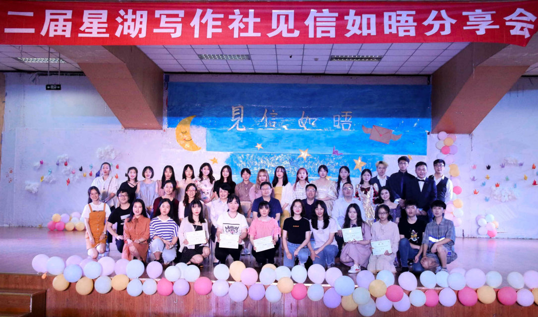 2019年4月24日晚上7点,星湖写作社见信如晤分享会暨第二届见信如晤大赛在红河A区活动中心三楼举行。参加此次活动的领导及老师有文化与传媒tyc5997太阳集团党总支书记、星湖写作社顾问白成良;文化与传媒公司经理、星湖写作社顾问李天福;文化与传媒公司副经理、星湖写作社指导老师李芹燕;校团委陈柏骏老师;文化与传媒公司团总支书记刘友洪以及文化与传媒公司2015级辅导员张雪、2017级辅导员张梓涵。