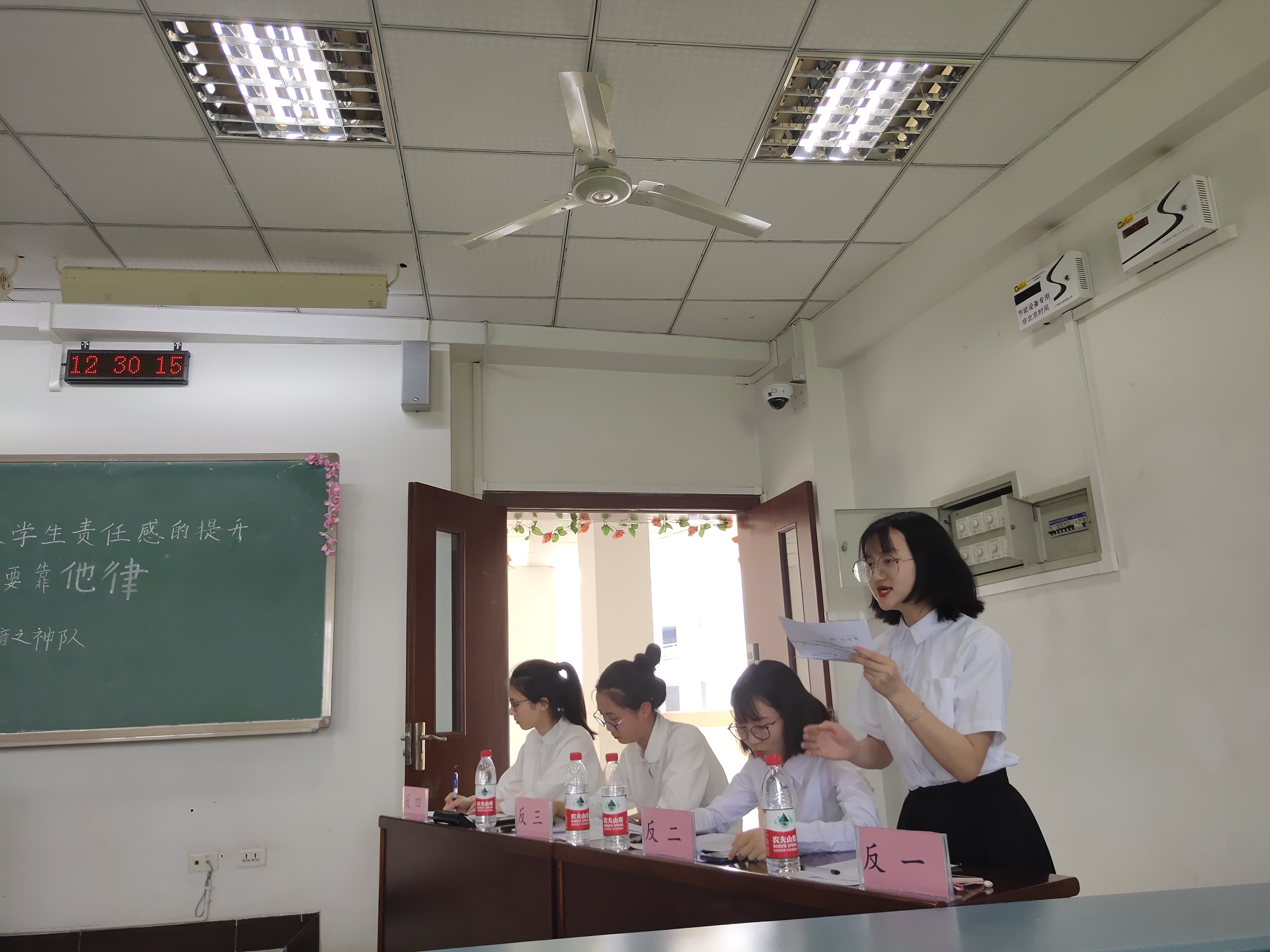 比赛共分初赛、复赛、决赛三部分,经过激烈的层层角逐,18级广播电视学专业辩论队和18级汉语言文学师范专业辩论队闯入决赛。在决赛阶段,双方就“当代老员工责任感的提升主要靠自律还是他律”的问题展开辩论。正方广电代表队认为当代老员工责任感的提升主要靠自律,而反方汉师代表队则坚持主要靠他律的观点。双方选手在立论、质询、攻辩和小结等各个环节中思路清晰,引经据典,字字珠玑,使现场气氛迅速升温。在随后的自由辩论中,双方选手就辩题展开更深层次的辩论,选手们个个妙语连珠,舌绽莲花,一次次将比赛推向高潮。最终,18级汉语言文学师范专业代表队获得胜利,来自18级广播电视学专业的周洋娟摘得“最佳辩手”的称号。