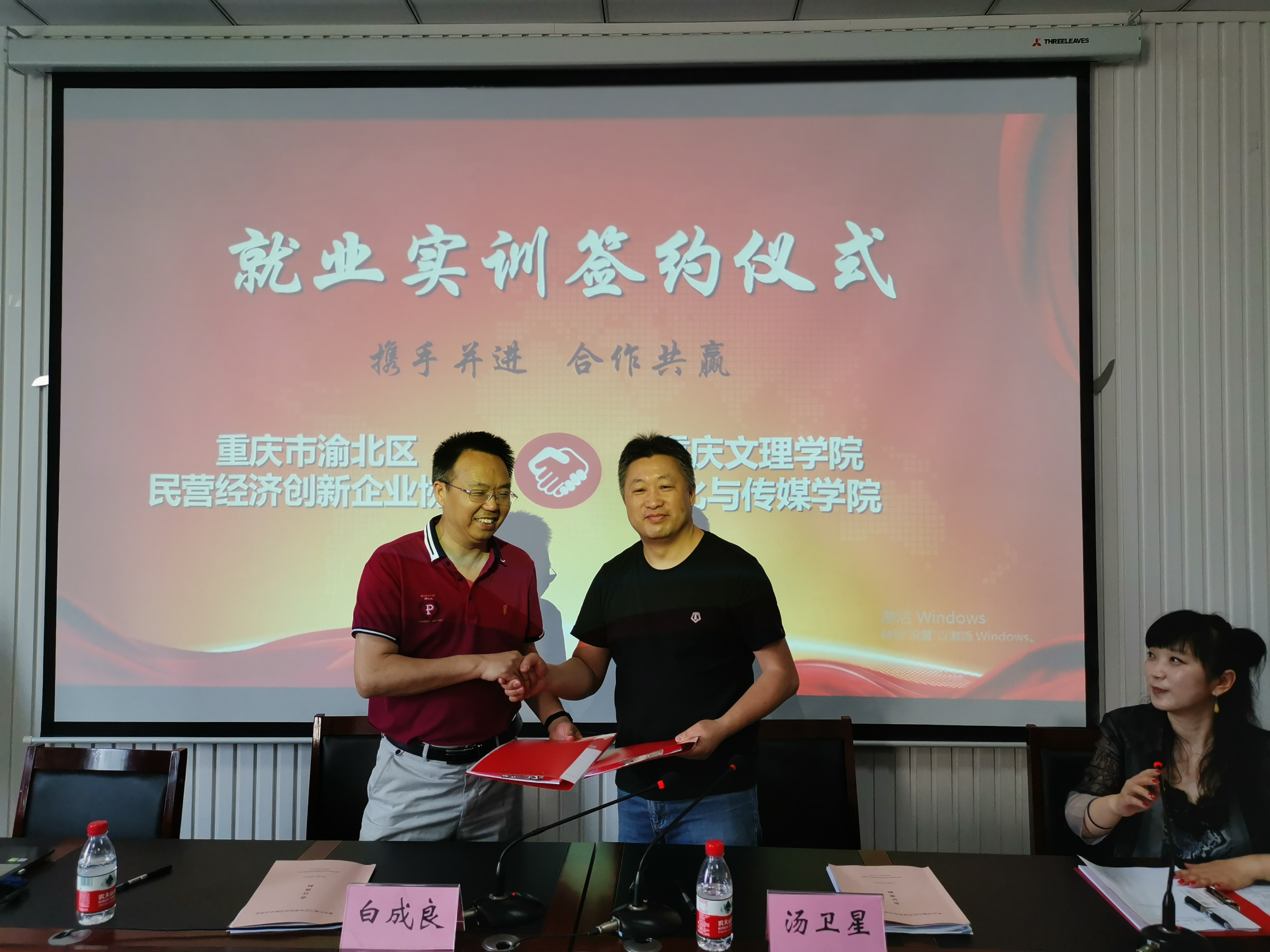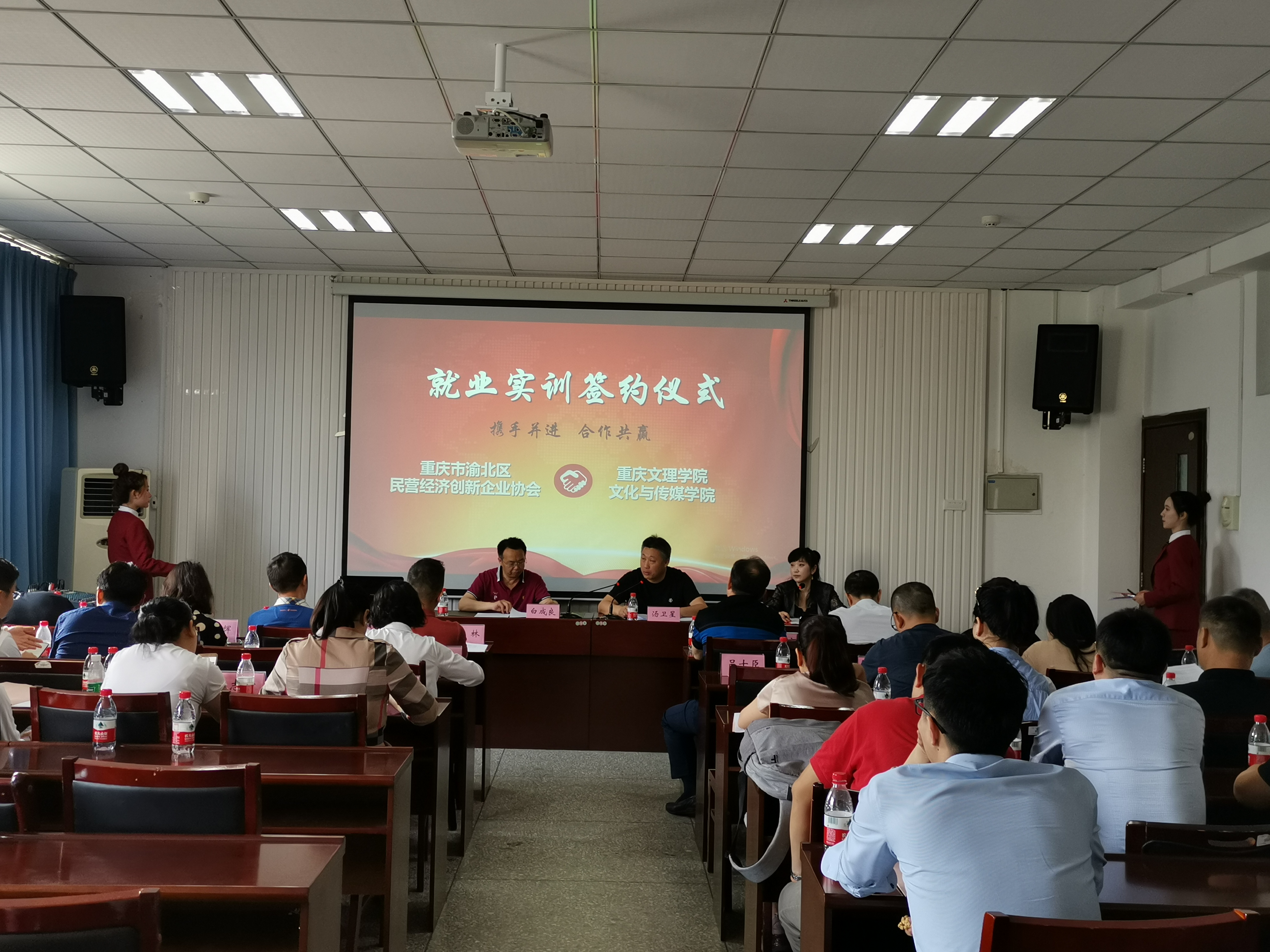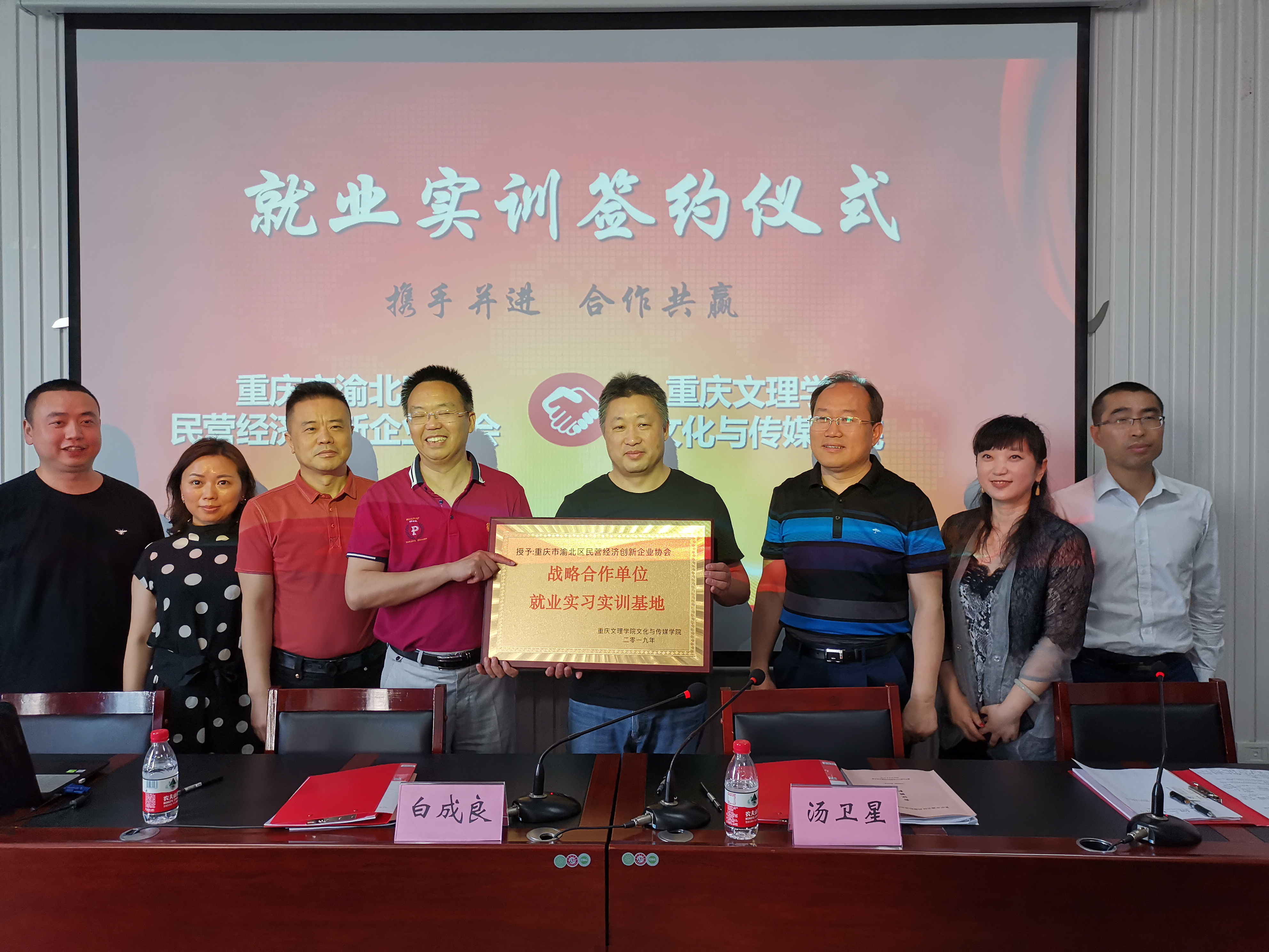 文传公司与渝北区民营经济创新企业协会为响应国家关于加强公司和企业合作的号召,充分发挥公司与企业双方优势,更好的为社会、为企业培养高素质、高技能的应用型人才,同时也为老员工实习、实训、就业提供更多空间。因此在双方共同努力下,这次签约仪式得以成功举行。