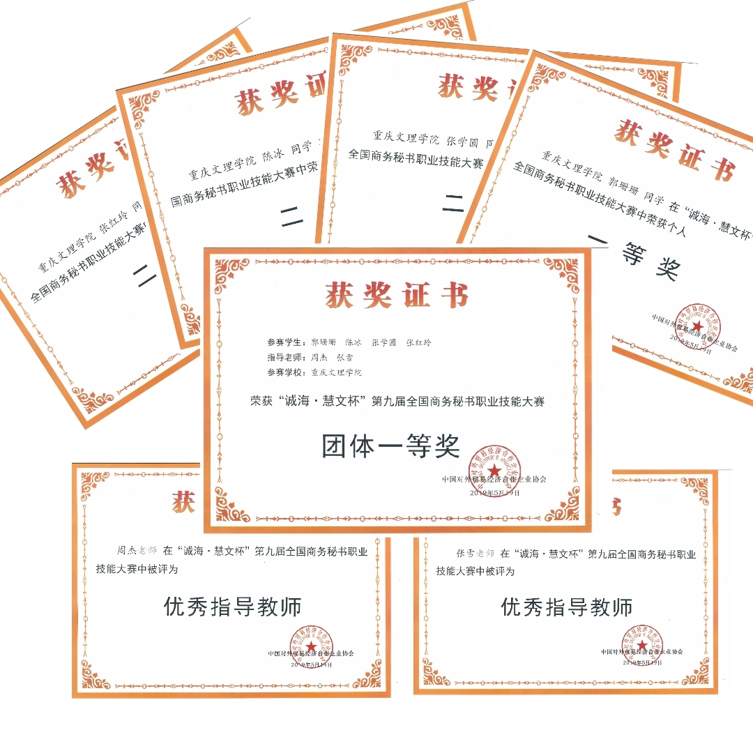 经过两天的角逐,我院代表队凭借着扎实的理论功底、精湛的实践技能荣获本次大赛的“团体一等奖”;其中,郭珊珊同学荣获“个人综合一等奖”,陈冰、张学圆、张红玲三位团队成员均获“个人综合二等奖”;周杰、张雪两位老师荣获“优秀指导教师”称号,充分展现出了我院汉语言(文秘)专业员工优秀的专业素养,以及我院在该专业人才培养方面的能力水平。
