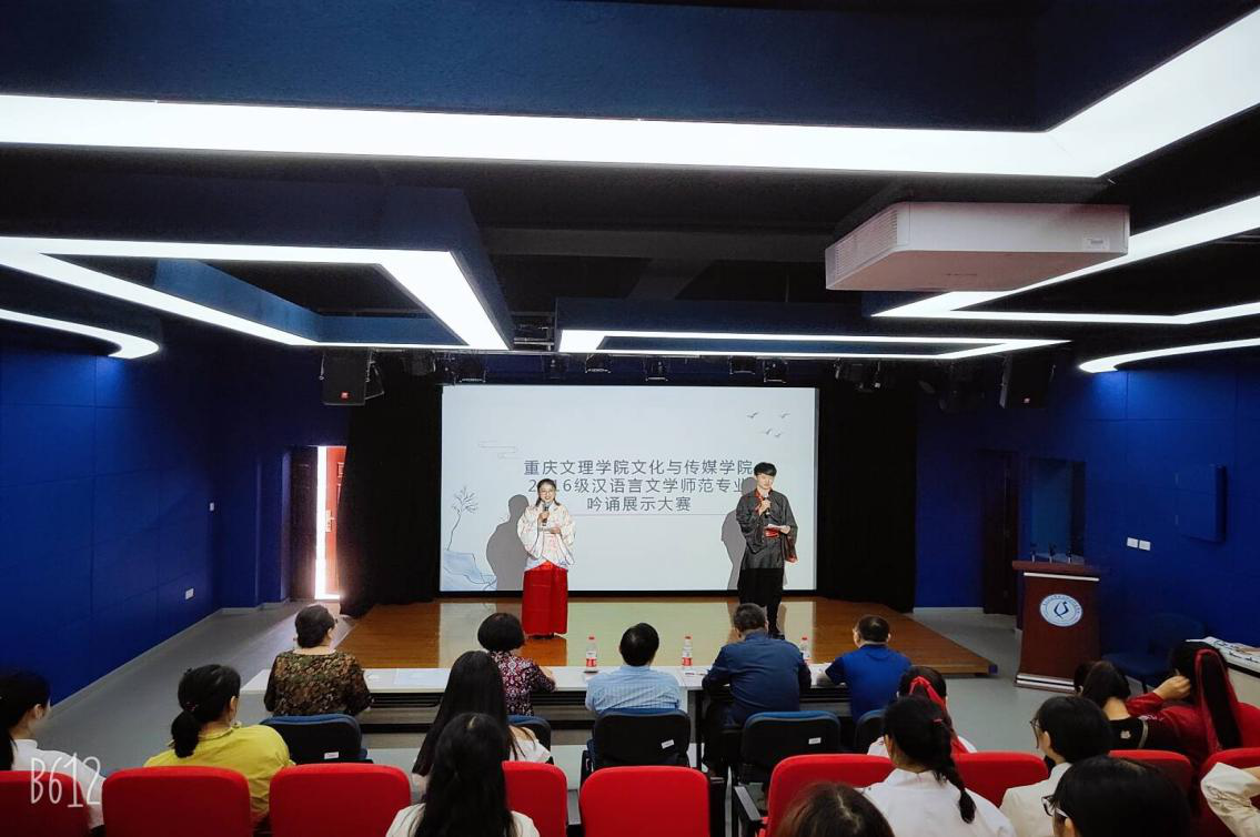 2019年6月5日下午4:20,在格致楼D502举行了主题为“吟经典,诵风采”的吟诵展示大赛,文化与传媒公司经理李天福、副经理李芹燕、中文系主任黄贤忠等5名教师以及2016级汉文专业员工参加了此次活动。