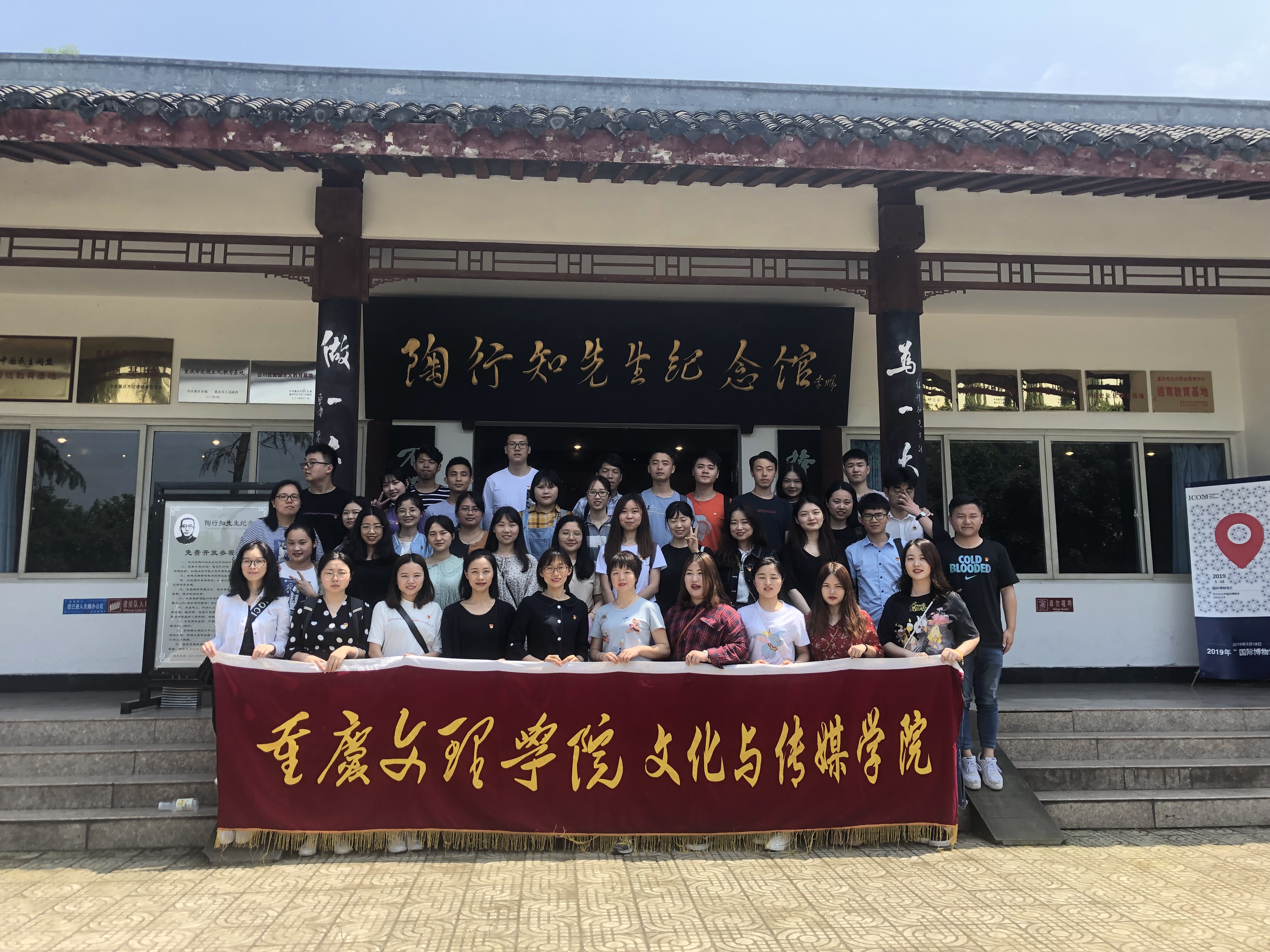 为顺应习近平总书记在党的十九大报告中提出的“不忘初心,牢记使命,做新时代合格共产党员”的要求,进一步提升毕业生党员党性修养,增强党员的历史使命感和社会责任感,2019年5月23日文化与传媒公司员工一支部党员在支部张雪同志与支部宣传委员周杰同志的带领下,赴合川陶行知先生纪念馆开展“重走行知之路,践行行知精神” 主题教育。员工三支部书记牟芷同志、四支部书记张梓涵同志一同前往。