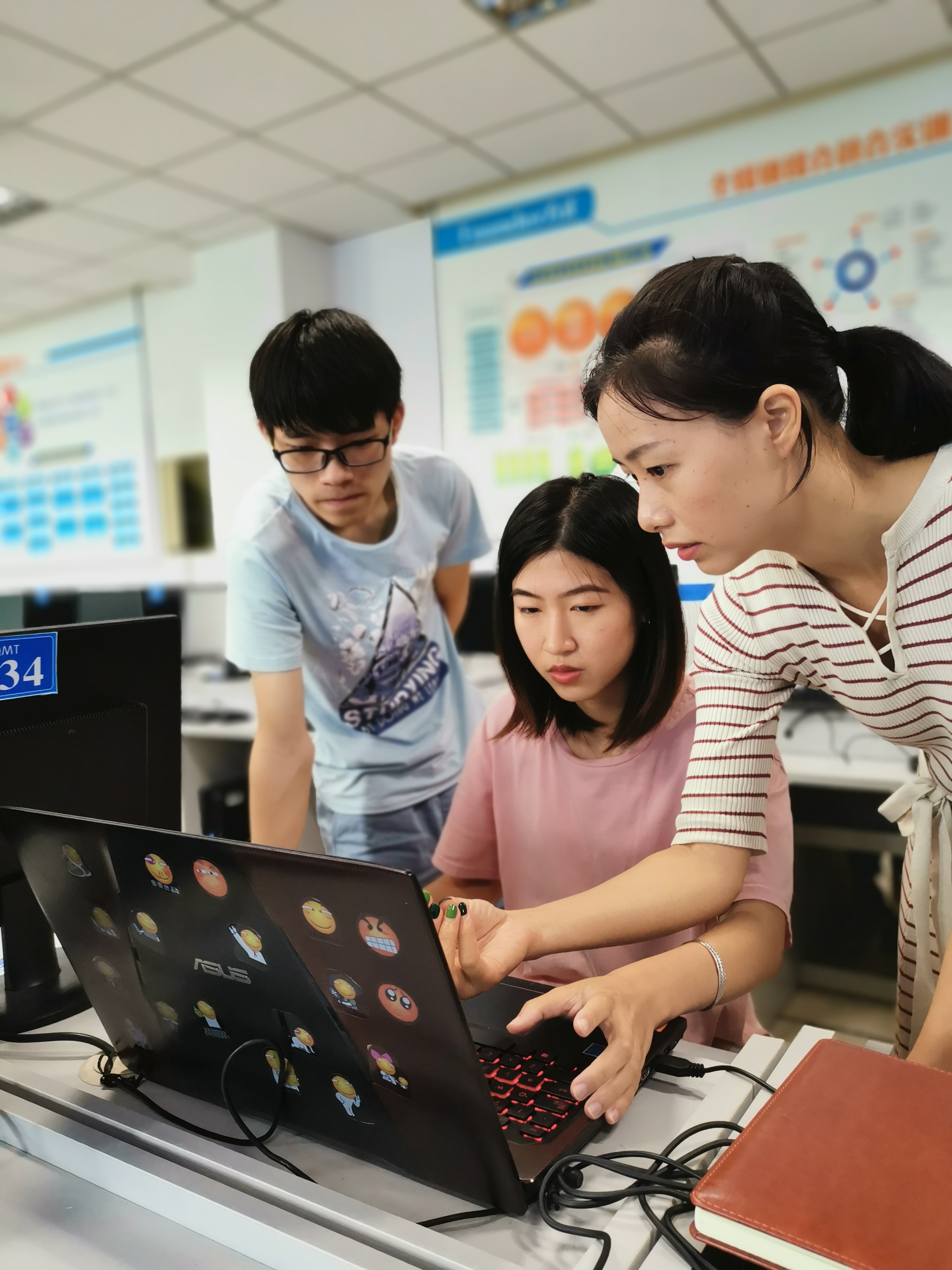 两位老师先对比赛规则和选题进行分析对新媒体内容的创意设计元素运用、版式风格、文案写作以及方正软件的操作等多个方面的内容进行讲解接着采用小组分工的合作形式选定参赛主题展开训练经过五天的专项训练和作品打磨,所有小组均顺利完成考核.