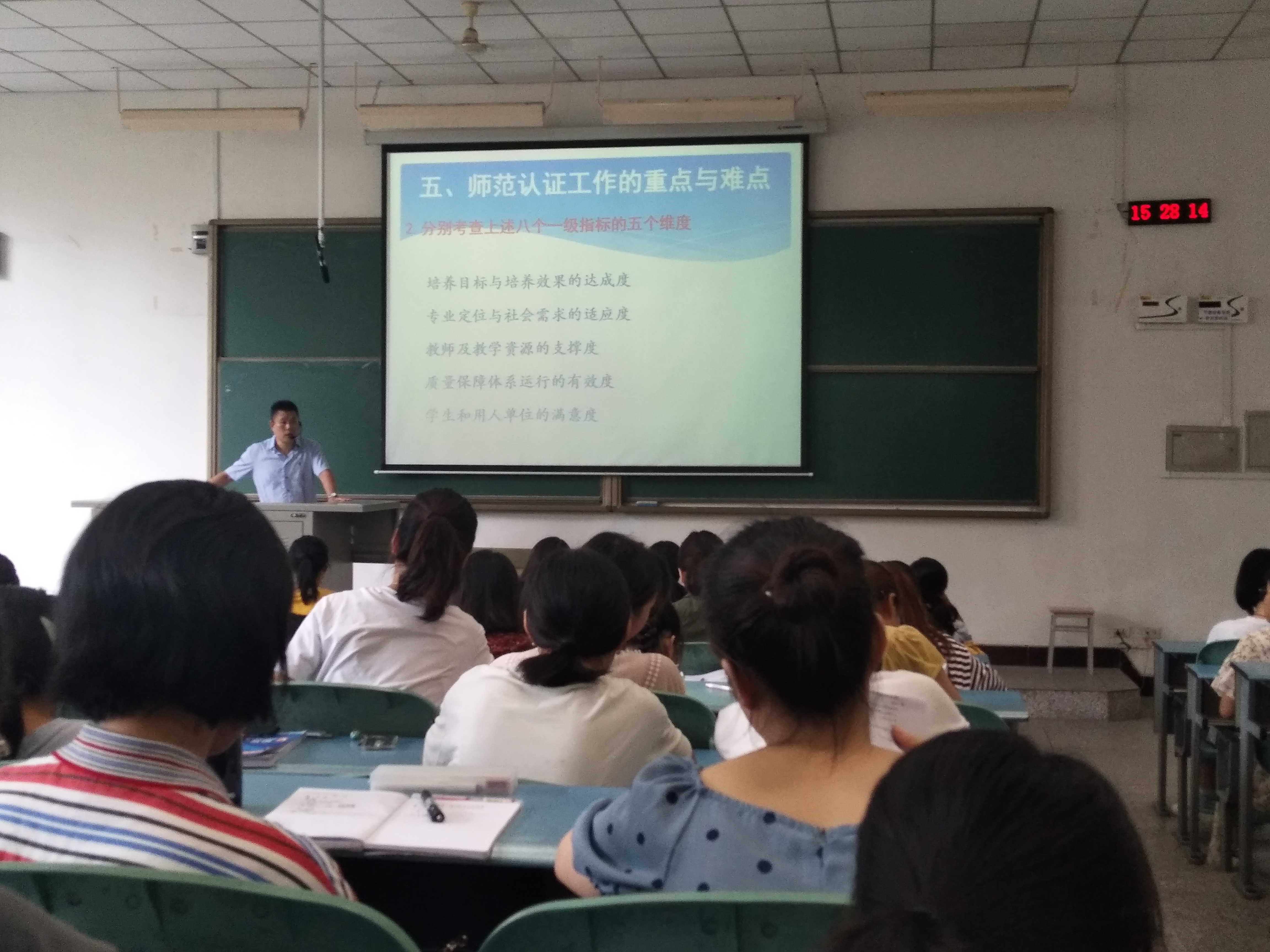 9月11日下午14点30分,公司在红河三阶为17、18级师范生举办了题为“师范认证是什么?”的师范认证知识专题讲座。主讲人中文系主任黄贤忠副教授就国家师范认证工作的相关政策从多个角度进行了系统的讲解。本次讲座旨在帮助公司中文系的全体员工系统全面地了解师范认证的要求和相关政策,从而推动公司师范认证工作的顺利进行。