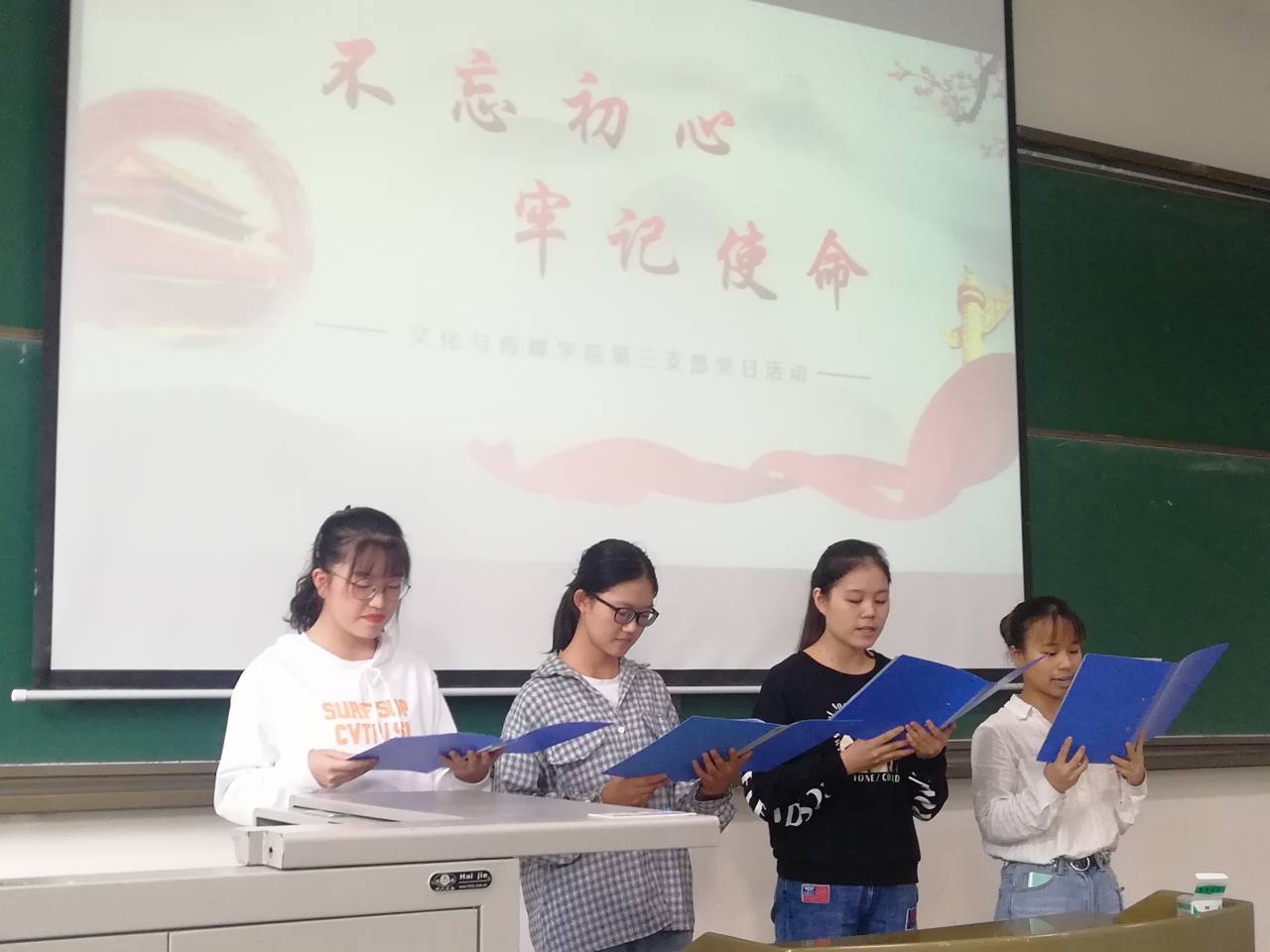 支部书记张梓涵强调,为中国人民谋幸福为中华民族谋复兴是中国共产党人的初心和使命。她用身边党员的例子引入,讲述优秀党员的先进事迹,提倡入党积极分子和预备党员学习榜样,思考如何坚守中国共产党人的初心,实现自身价值,为国家发展民族复兴贡献自己的力量。