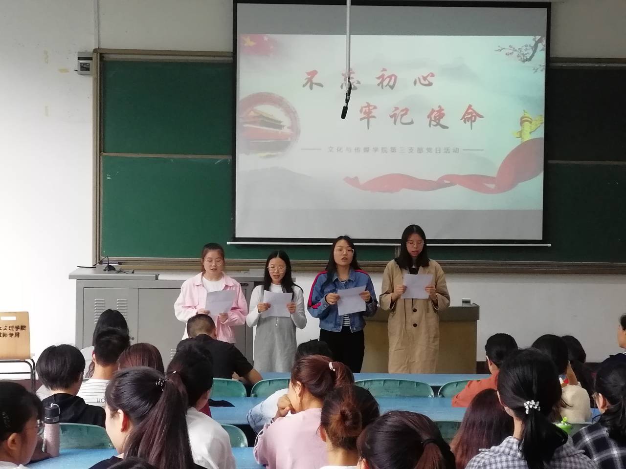 9月25日下午,员工第三支部在知津楼三阶教工第二支部开展“不忘初心、牢记使命”主题教育学习,支委成员、预备党员、所有入党积极分子参加了本次学习活动。支部书记张梓涵主持了本次学习。