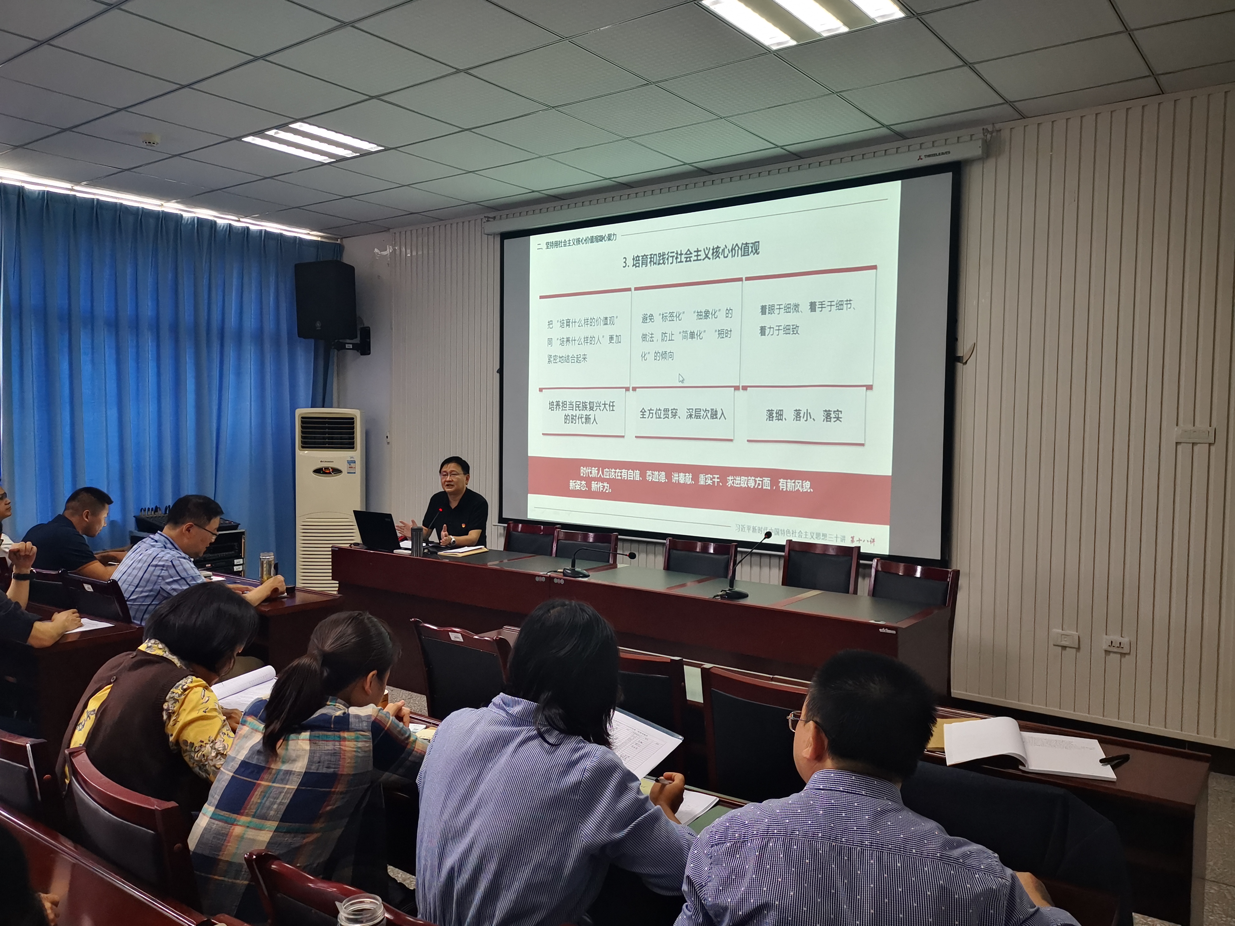 邱飞讲解了《习近平关于“不忘初心、牢记使命”论述摘编》主要内容,包括“中国共产党人的使命和责任”“中国共产党人的思想和信念”“政治建设和政治站位”“党的建设和执政能力建设的方法”“加强党的建设的要求”等五个方面,并分享了自己的学习体会,认为教育战线要坚决贯彻执行党中央的教育方针政策,坚持教育为社会主义现代化建设服务、为人民服务,把立德树人作为教育的根本任务,全面实施素质教育,培养德智体美劳全面发展的社会主义建设者和接班人,努力办好人民满意的教育。
