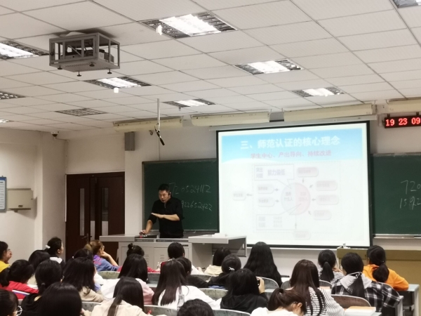 2019年10月10日晚7点,文化与传媒公司中文系主任黄贤忠博士在知津楼D404为2019级汉文师范专业员工举办一场旨在解读师范认证理念和2019人才培养方案的专题讲座。2019级汉语言文学师范专业的全体新生参与了这次学师范认证理论学习。