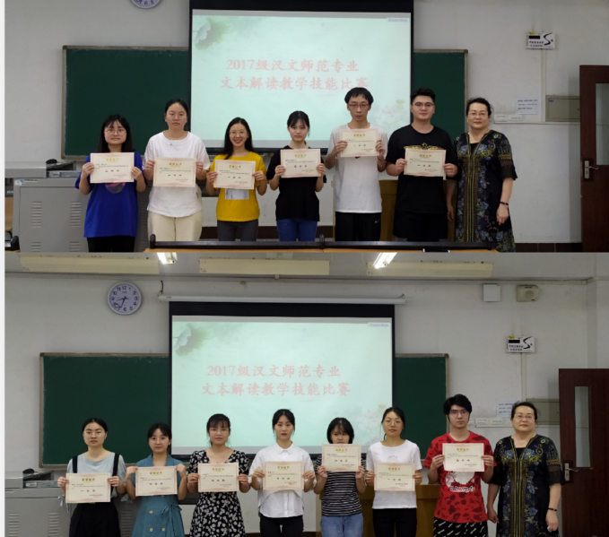 6月30日,中文系“文本解读”教学技能比赛在知津楼A201教室举行。李东平老师、刘光明老师担任比赛评委,2017级汉文师范专业全体员工参加比赛角逐。