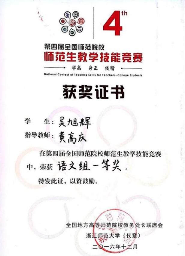 4 | 《文学常识之古代“高考”》 | 首届全国师范院校师范生微课教学大赛 | 2019 | 三等奖 | 国家教育部 |