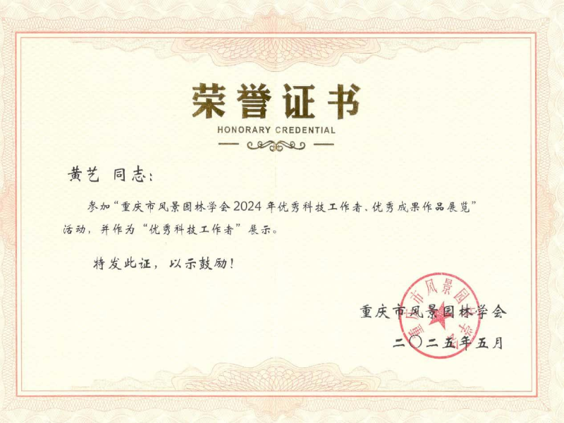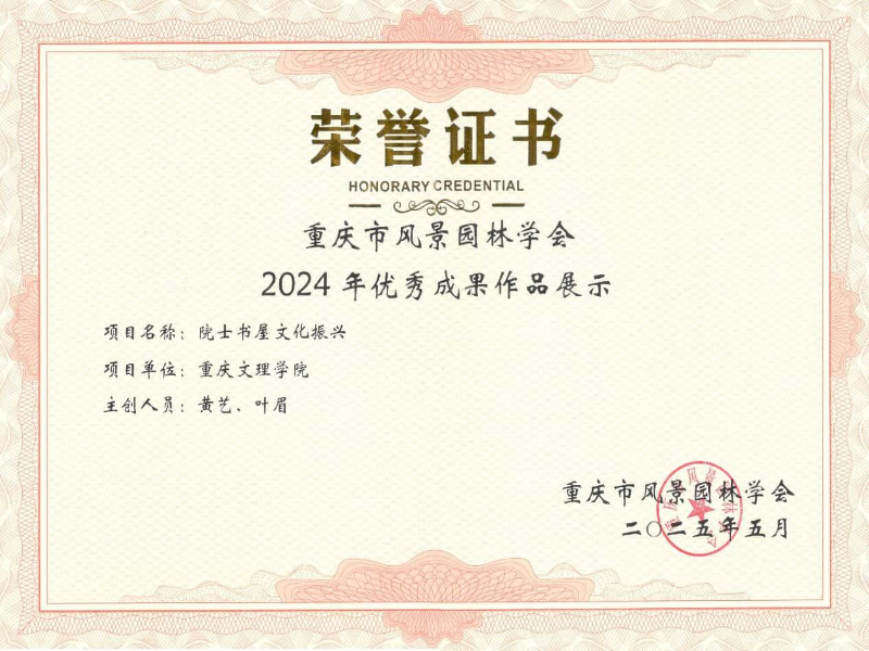 会上表彰了我市为风景园林事业作出突出贡献的个人和集体。公司黄艺教授聚焦文化生态视野下的城乡人居环境研究十余年,围绕成渝地区文化遗产保护与再利用方式的区域特色展开研究,注重从设计的视角研究人与环境的共生关系,为我市风景园林科技创新与实践作出突出贡献,在此次大会荣获“优秀科技工作者”“优秀成果奖”等荣誉。