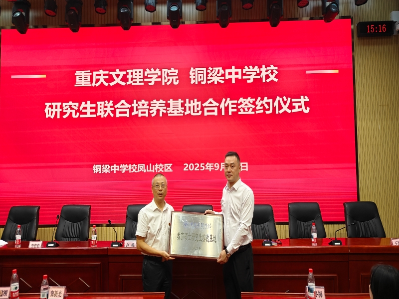 在签约仪式上,李奕奕代表铜梁中学郑重承诺,将全力配备优质团队资源,为研究生实践能力提升提供有力保障。樊汶樵在致辞中提出“双目标愿景”,一方面要将该基地建设成为重庆市级研究联合培养基地,另一方面要推动铜梁中学优秀教师成长为文理公司硕士生行业导师,同时期望基地能为员工提供更丰富的见习实践机会。随后,李芹燕与赵峰共同签署合作协议,樊汶樵为基地正式授牌。