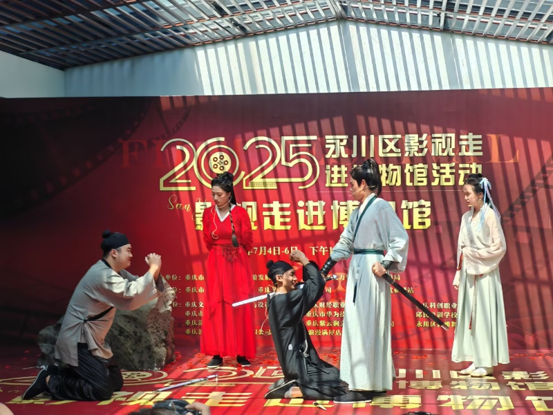 7月2日至7日,2025上合组织国家电影节活动期间,公司2024级广播电视编导的同学们带来了系列经典演绎与原创表演,在永川协信广场大舞台举办的2025上合组织国家电影节户外市集暨2025不夜重庆生活节、永川博物馆举办的2025永川区影视走进博物馆活动中分场次精彩上演。《红楼梦》、《仙剑奇侠传》与《破晓》轮番登场,以多样的呈现形式为这场国际文化盛会注入活力,赢得中外观众好评。