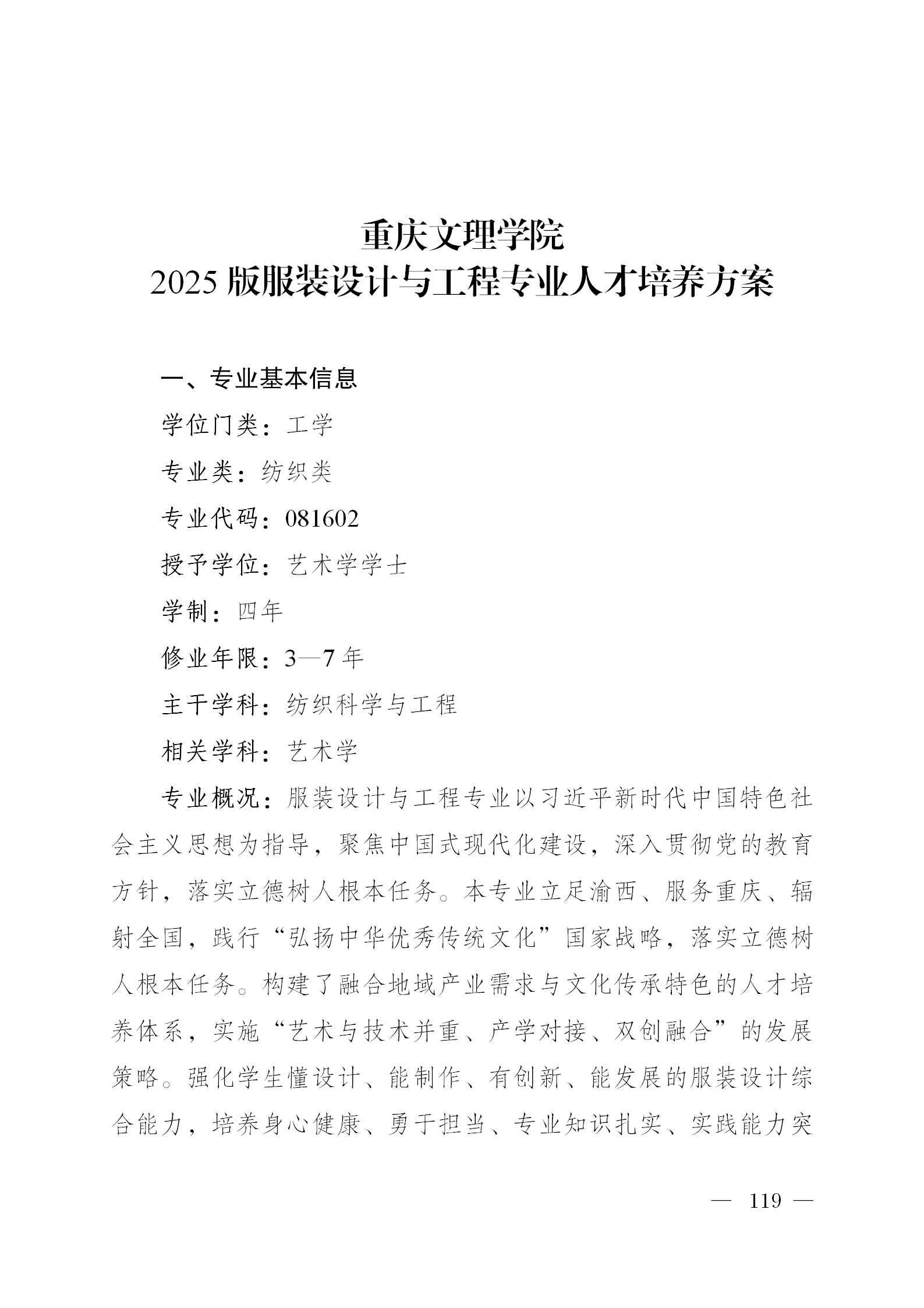 服装设计与工程专业人才培养方案(2025版)