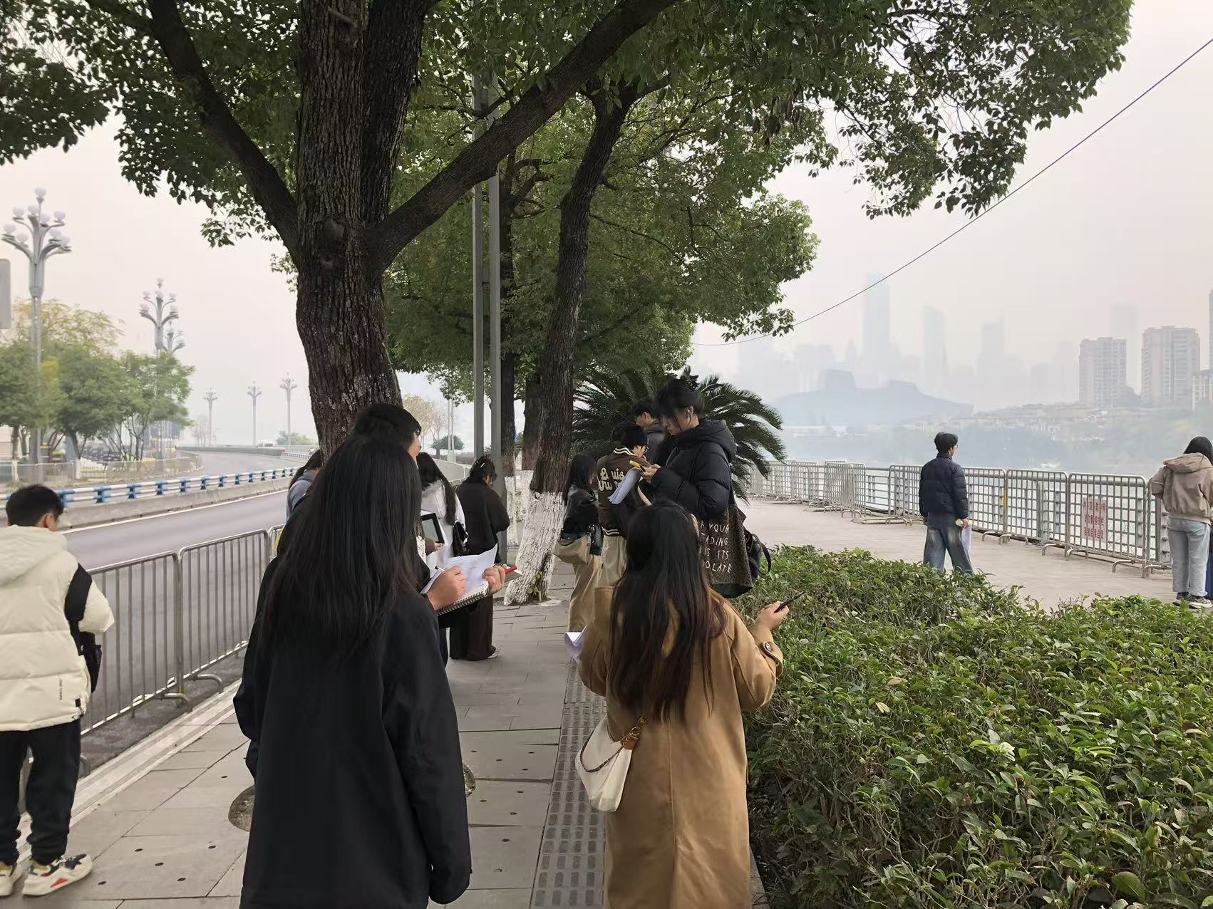 12月17日,为切实提升研究生对山地城市人居空间的现场调研与设计分析能力,公司2025级设计专业硕士研究生在黄艺教授的带领下,前往重庆市南岸区弹子石片区与九龙坡区九龙滩滨江公园,开展了一次山地城市人居环境空间实地考察活动。